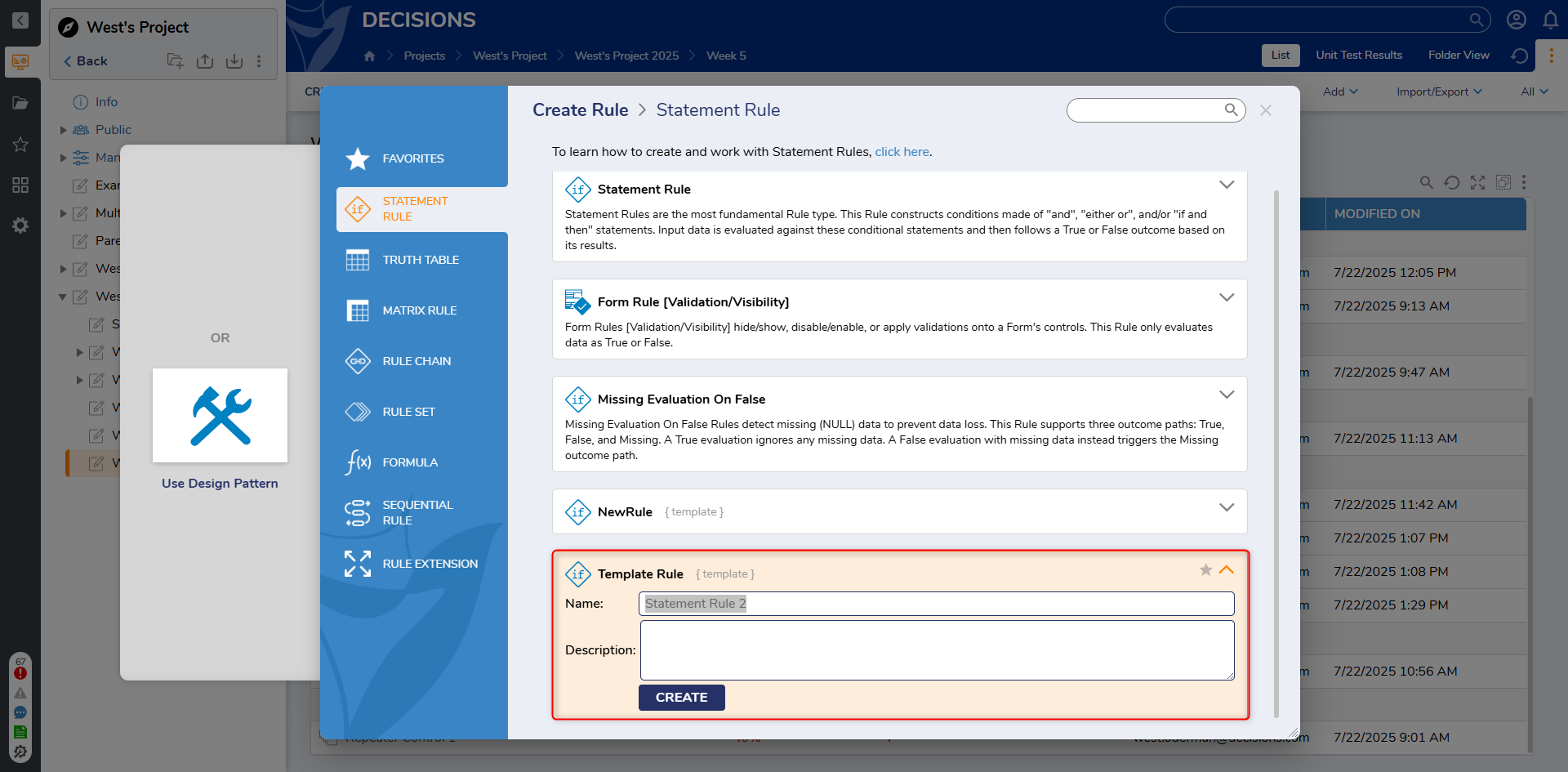 1 Locate the intended rule to create as a template. If this rule is not created yet, do so now. For information on how to do so, refer to this article: https://documentation.decisions.com/docs/create-rules?highlight=rule