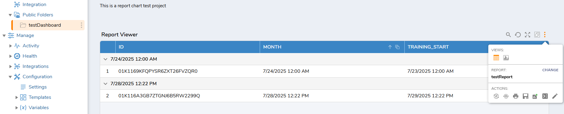 Report on Dashboard Screenshot and Chart View on Dashboard