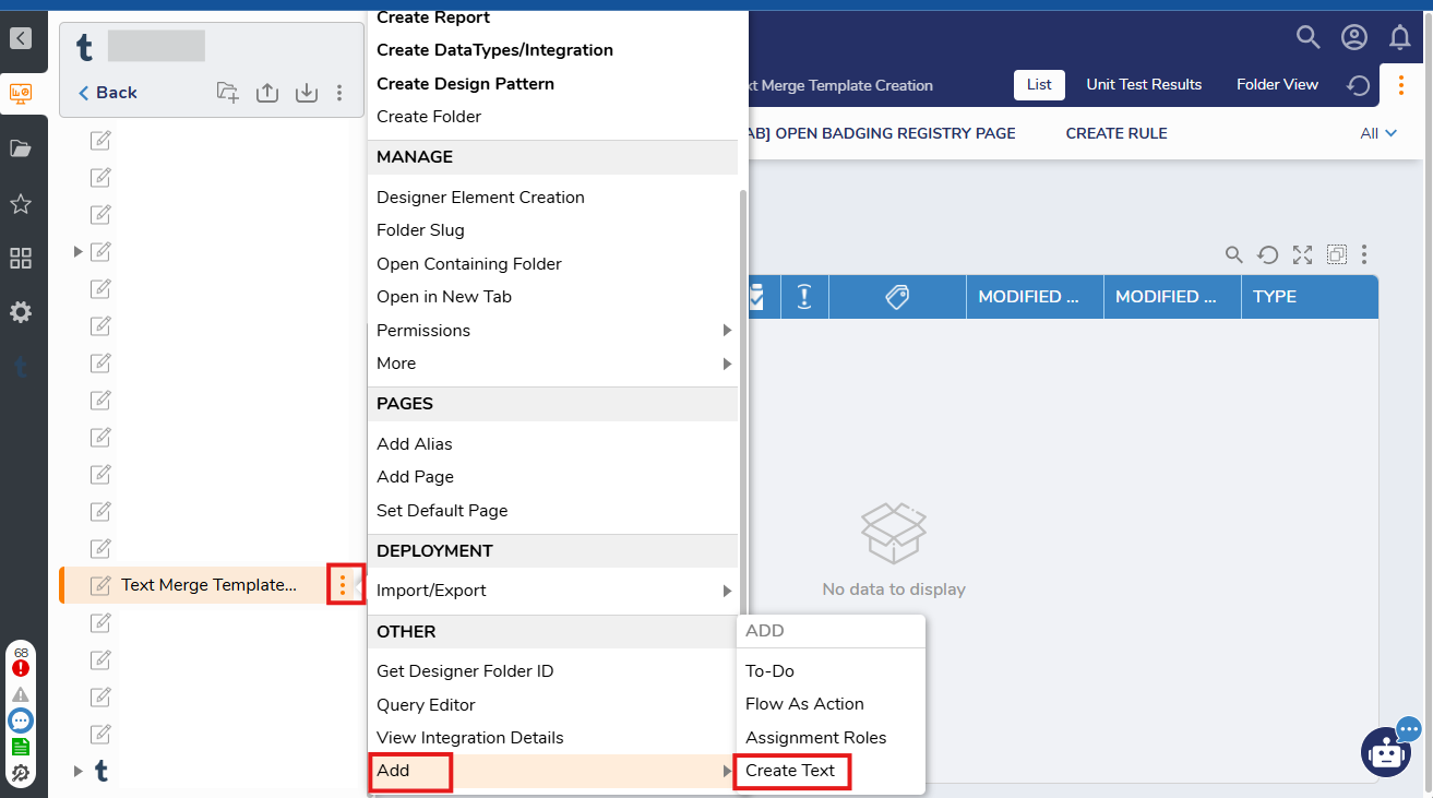 Name your template > Select "Template" > Select "Create" at the bottom of the menu. This will create a reusable Text Merge template as a Designer Element in your project.