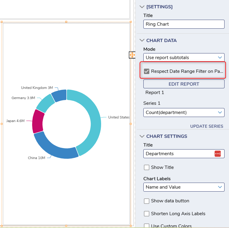 I would like to make a page that displays a ring chart for my report. I have the ring chart set up, but I'm not sure how to use the date range filter with it so users can adjust the filter for it.
