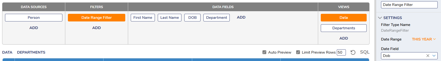 • To get your Ring Charts set up with the Date Range Filter, make sure that the source report has the Date Range Filter selected with the field that will be used for the range selected.