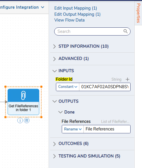 In the 'Get FileReferences in folder' step, you are prompted to pass in the folder ID, where the file reference entity is held.