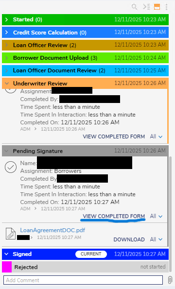 From here, you can add a 'Show Form' step, pick the form that has Document Viewer configured to take in File Reference and give it a data name and pass in the output in the previous step in the 'Show Form' step properties. If there are multiple, assuming that the completed form is the most recent and explicitly saved in the process folder, should be the last in the array.