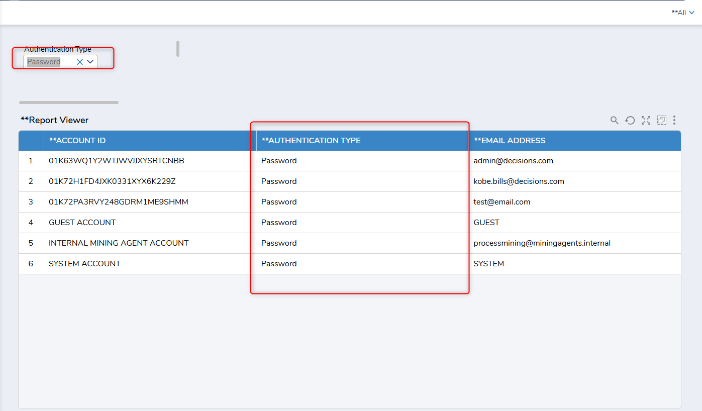 5)After saving, the report will be filtered based on selected authentication when the selection is changed.