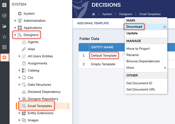 The default Decisions email template will be used until you update the default or create a new email template and assign it to your project. Likewise, the assignment email template can be updated as well.
