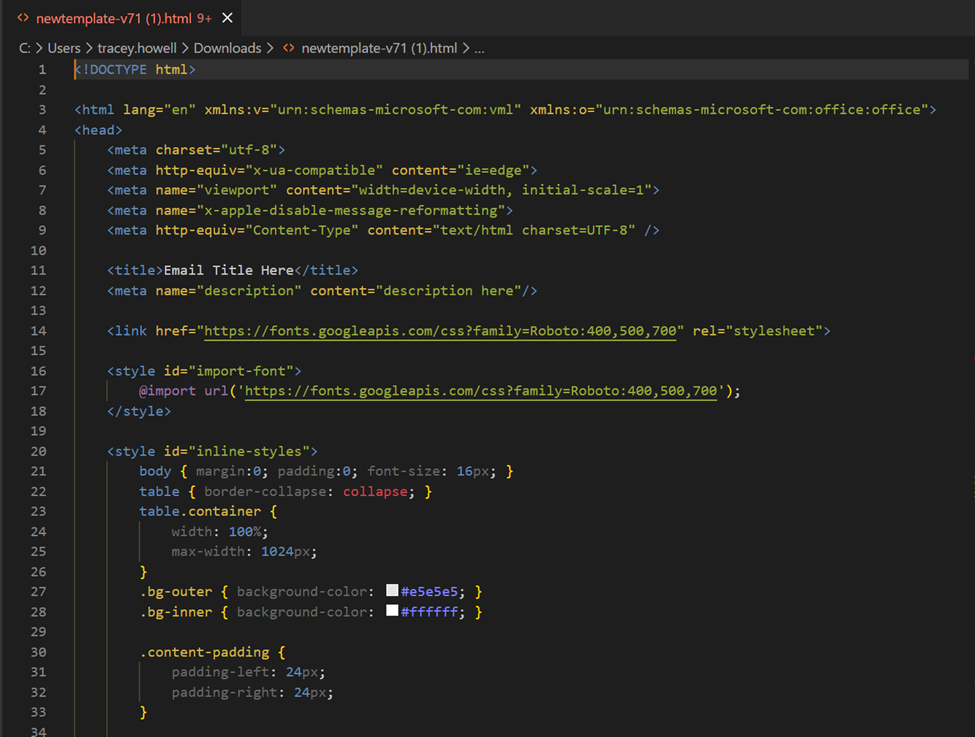 Open, edit, and Save the Default Template as desired. Note: The new email template must have a section with {{content}} in the body.